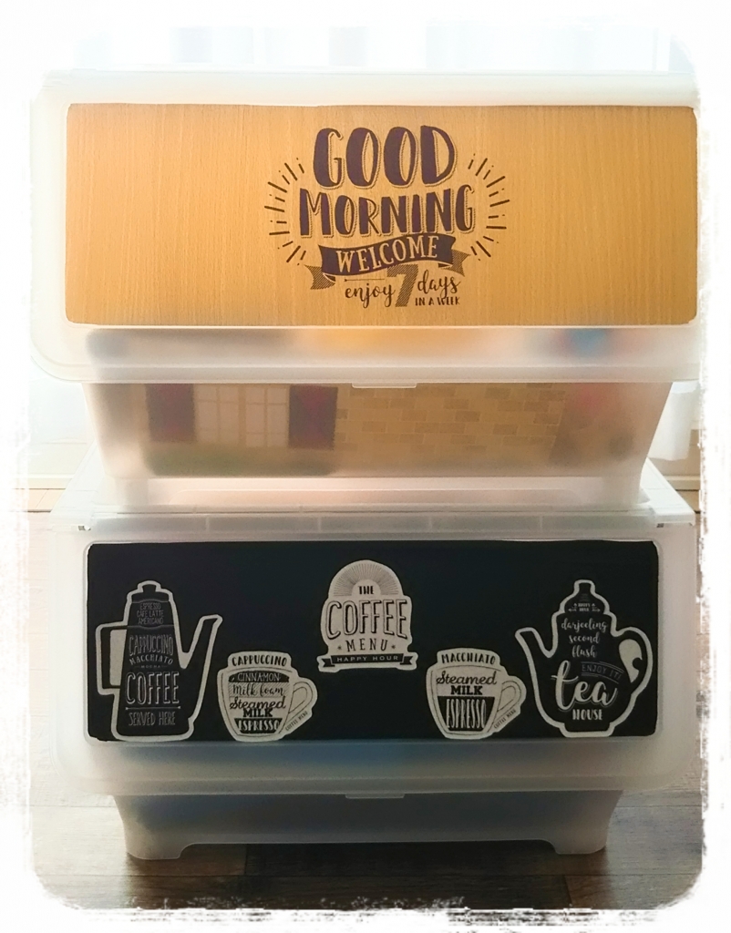 ●蓋から透ける、生活感を隠したい! リビングに置いてある、ふた付のボックス。 (IKEAで購入。FIRRA ふた付ボックス 899円。45×45×31?) ふたを開けたままの状態でキープできるので、使い勝手が良くて気に入ってます。 ただ、一つだけ「なんとかなるといいなぁ!」と思っていたのが… プラレールのレールや橋脚などの部品類、駅やトンネルなどを入れているけれど、いっつもゴチャゴチャ(-_-) 半透明なので、ゴチャゴチャに入った うっすらや赤や青・黄色などの色が見えちゃ...