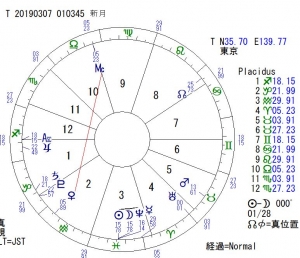 JUGEMテーマ:星占い・星読み・占星術 新月満月のメ-ルマガジンのご登録はこちらです。 よろしければご利用ください 3月7日の新月図です。 満月時には気が向いたらUPしますが、新月時には こんな感じで読んでますー、的に書いています。 今回のポイントはこんな感じです。 ・水星が逆行中(ちょっとこの図ではわかりにくいです) ・天体が下半分に集中 ・新月が3室、15度で起きている(前回は1室15度) ・太陽から水星までがうお座に ・その他 人によって着眼点が異なってくる面もあります...