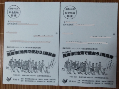 JUGEMテーマ:お得な情報大公開中 長崎市『地元で使おう』商品券 6月にwebで応募した、プレミアム付き長崎市『地元で 使おう』商品券が購入できますという葉書が届きました。 4人分応募した結果・・・全員購入可能との事で、事前 に登録しておいた購入場所で購入し、早速使い始めました。 これは本当にお得です。 共通商品券は10000円で2000円のプレミアム 飲食店限定商品券は10000円で3000円のプレミアム ちなみに、私はキャッシュレスやポイントが...