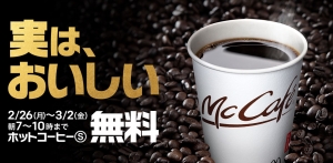 JUGEMテーマ:お得な情報大公開中 既に広告で見てる方も多いかと思います。 26日から一週間、朝7時からの3時間限定でなんとホットコーヒーを無料で提供する。 美味しさを知ってもらいたいということだそうだ。 是非、マックのコーヒーをこの機会に飲みたいところだ。 公式サイト http://www.mcdonalds.co.jp/campaign/coffee/ マクドナルドはポイントを貯めて利用するとさらにお得に利用できるぞ 当ブログ更新をtwitterでお知らせできます 君の名は。を見...