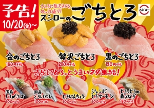 JUGEMテーマ:お得な情報大公開中 回転寿司最大手チェーンのスシローが20日より新しいキャンペーンをスタートさせる。 今回は「ごちとろ」との愛称でなんと大トロの上にうにやキャビアを乗せた豪華メニューだ。 この価格でこの内容は正直驚きというかもう破格としか言いようがないぞ。 こんなんで儲かるのかしらと心配してしまいます。 詳細はこちらから ポイントを貯めてスシローを食べよう http://www.akindo-sushiro.co.jp/campaign/detail.php?id=743