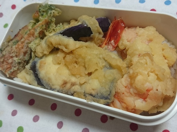 こんにちは、てとすけです。 昨日はお芋をいただいたので、夕食は天ぷらにしました。 でも、ダイエット中なので、私は夜に天ぷらは食べずに、お弁当に入れてきましたよ。 天丼です。 ごはんを敷き詰めた上に一煮立ちさせた『創味のつゆ』に天ぷらをさっと浸し ご飯の上に並べました。 う〜〜ん、美味しい〜〜♪ ランチだけは、カロリー気にせず、食べるようにしています。 そうしないと、ダイエット長続きしないですものね。 ...