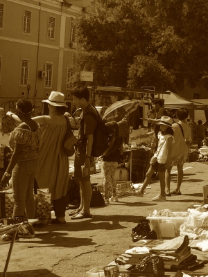 路上で作品を売っている知り合いのアーティストからきていしました。 そうしたものに、日本人観光客は足を止めないと。 今回「泥棒市」で店をひろげる私の前を日本人家族が通る機会が2回ありましたが、 彼らは私の店前で足を止めることはなく、 「日本人が店を出している」ということに気づいていません。 私が彼らが日本人であるかがわかったのは、一つの家族は日本語を話していたこと、 もうひとつの家族は日本語の観光ガイドブックを手にもっていたことです。 二つの家族に共通しているの...