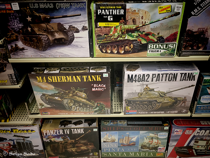 palstic model kit @temecula, california 2018 iPhone6S クラフトショップに行った時に見かけたプラモデル 小学生の時にタミヤの1/35のプラモデルを 作っていたのが懐かしいな〜と思いながらパチリ この店にはタミヤの戦車とかもあったけど 50ドルくらいで売っていました 昔ってそんな高かったかな?輸入品だから? まぁ、懐かしく思ったのでパチリしたというお話 - thank you - ご訪問有り難うございます