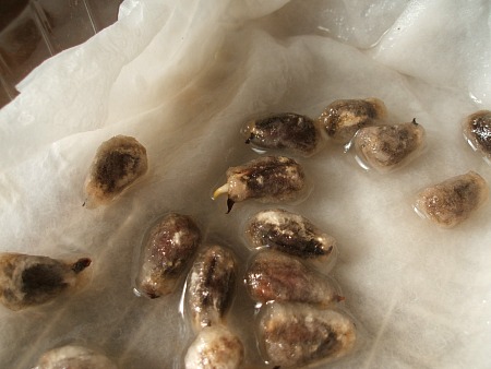 今年の棉栽培始動しました。 おととい 発根させるべく 水に入れて待機中です。 一度、3色の種を同時に育てたら交配してしまったので その翌年から 一色づつ植える事にしました。 ですので、今年は2011年に育てた白いコットンです。 昨年の茶綿は収穫が無かった為、種が取れず6年後?になるのかー 種が古くなると発芽率が下がるのでちょっと心配ですが、 茶綿の種なら入手しやすいと思うので、今年は白に♪ JUGEMテーマ:棉花栽培日記