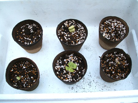 えづらが地味なので 花の画像投入!! ごらんのとおり、早く双葉が出た子だけ ようやく本葉がでてきました。 他のも ようやく双葉が!!! 出てこないのは4つ。 うち3個は双葉がでそうな感じになっていますが いまいち力不足なのか 深く植えすぎたのか… 1個は完璧にお出ましなさらない様子で 出そうな子の中の1個は 茎の部分が双葉とはなれてしまってるように見える… って 事は 合計8個って感じかな〜〜〜〜 暑くなるのは 嫌だけど 早く大きく育ってくれないと ちゃんとした実がならないのよね… ...