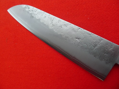 銀三鋼割り込みの三徳包丁、サイズ180mm 錆びず切れ味抜群の手打ち包丁です、家庭用万能包丁の極上品になります。研いで良い刃がつけやすくお薦めの1品になります。価格15.000(税別)
