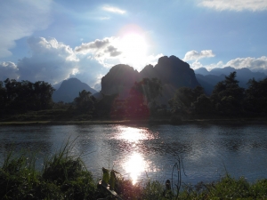 メコン川沿いに開けたヴィエンチャンから車で主要幹線道13号線の平地を走ること約1時間半、突然山が立ちはだかり、そこからヴァンビエンまでヘアーピン・カーブを上下に繰り返しながら3時間近く走ってヴァンビエンの町に入る。 途中には鄙びた感じの村も次々と現れて山奥を走っている感じは薄い。また、途中には日本のODAで建設されたラオスの自然環境破壊の元凶といわれるナムグム・ダム水力発電所も別の道をたどって行け、こちらはダム湖に遊覧船などが運航していて、ヴィエンチャンから日帰りで行ける格好の観光地となっている。...