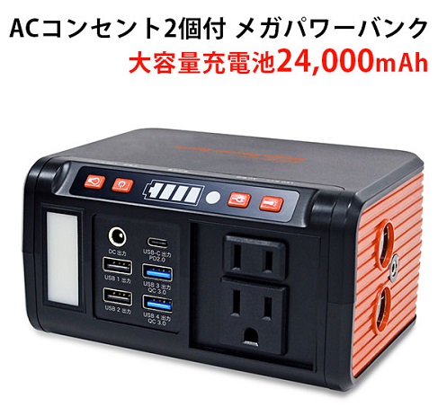 JUGEMテーマ:災害対策 メガパワーバンク(ACコンセント付)のご購入は、コチラから EVERBright メガパワーバンク(ACコンセント付) パソコン充電可能! 小型家電製品使用可能、大容量24000mAhのハイパワー 高効率ソーラーパネル(別売り)と組合せ、災害時や野外でも十分な充電可能 ●大容量でも小型軽量(1030g)で、収納・移動も簡単、あらゆる状況で活躍 ●スマホサイズのパワーバンクよりもはるかに大容量・大電力 ●携帯電話のフル充電はもちろん、ノートPC、小型家電製品の数時...