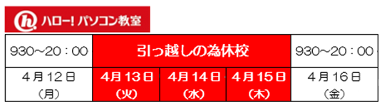 ハロー!パソコン教室田無アスタ校 | 2021.04.20 Tue 08:44