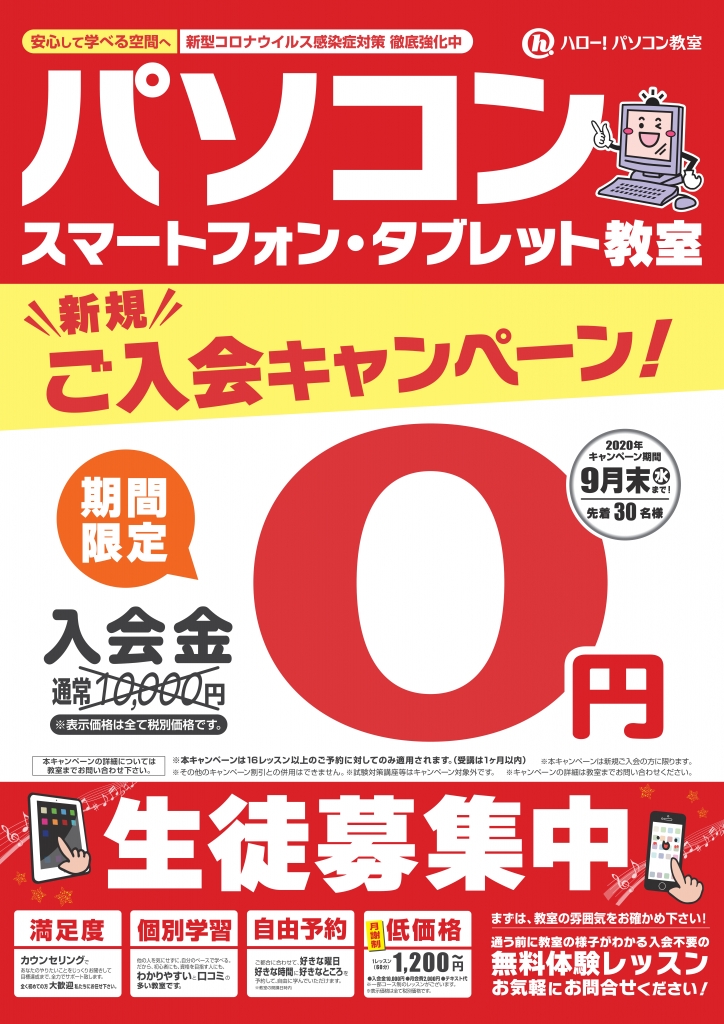 ハロー!パソコン教室 イオンモール大和校ブログ(大和市オークシティ) | 2020.09.01 Tue 13:59