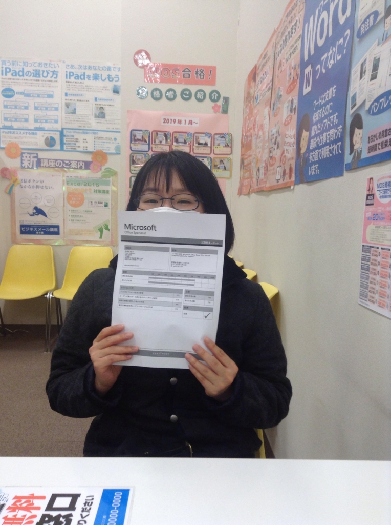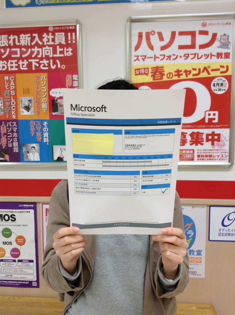 ハロー!パソコン教室イトーヨーカドー蘇我校 インストラクター桑原です! 最近暖かくなってきたせいかよく眠れます…笑 春の訪れというやつですね さて、私が眠っている間にもせっせと勉強してMOS試験に合格された方がいらっしゃいます! 今回ご紹介するのは、 MOS Excel2016 Expertに見事合格した、Sさんです! Sさんは教室でもとても集中してレッスンされていましたね♩ 努力の結果としてExcel...