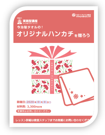 JUGEMテーマ:習い事・資格・講座 ハロー!パソコン教室イトーヨーカドー蘇我校 インストラクター江角です。 今回はお知らせです! 4月23日に、蘇我校でグループレッスンをします! 来月はみんなで「オリジナルハンカチ」を楽しく作る予定です。 PowerPointというソフトを使って作っていきます。 簡単な操作で作っていけるので、ソフトを使ったことが無い方でもご参加できます! 分からないことがあれば、側にいるインストラクターにすぐ聞けるので安...