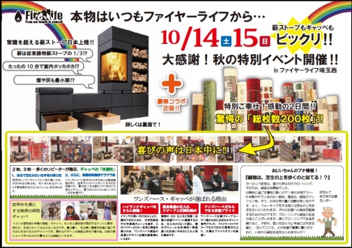 JUGEMテーマ:ギャッべ イベント一日目が終了しました。 たくさんのお客様にご来店いただきありがとうございました。 明日もう一日ありますので本日来られなかったお客様是非 ご来店ください。 ●ギャッべも300枚と選び放題価格も30%オフと大放出! ●安全関連グッズも25%オフ! ●薪ストーブアクセサリーも20%オフ! ●本格バーベキューグリルやピザ窯も大特価! ●フィンランドの薪も大特価!