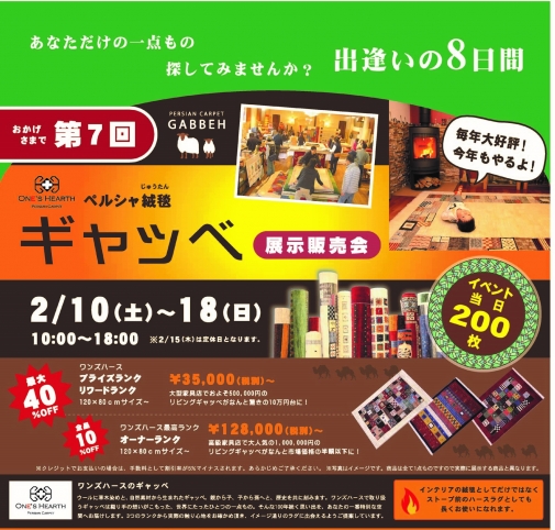 JUGEMテーマ:ギャッべ いよいよ明日より2日間 2月18日土曜日、2月19日日曜日は ギャッベイベントです。 300枚の大小様々なギャッベがきました。準備は万端です。 ファイヤーライフ通常価格より今回15%〜30%オフとなりま すので大変お得になってます。 是非お好きな一枚を選んでください。 今回のギャッベイベント同時に10周年イベント一緒に行います。 安全グッズは25%オフと大変お買い得! また薪ストーブアクセサリー類も全品20%オフとこちら...