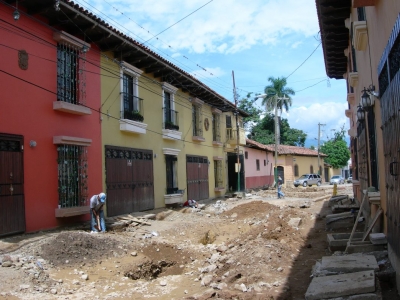 【写真−1 結局、工事が終わったのは帰国してからかなり経った時期であった】 家の前の道が掘り返され車庫に車を入れられない。市による下水管工事のためで、工事をするのは知っていたがいきなりの開始である。市役所の担当に『住民に代替車庫の手当てをするべきではないか』とかけあうと、そんなことを要求する人間はホンジュラスにはいないと、宇宙人を見るような表情と対応だった。 どの国でも『お役所仕事』というのがあり、横柄、非能率の代名詞に使われるが、この場合はひどく『外国人にそんな対応を...