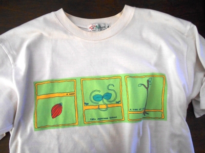 Tシャツという言葉は日本語に定着しているが、英語圏のフィリピンでもTシャツそのままで通じるから、英語圏では共通語になっているようだ。もっとも、フィリピンでは襟付きのいわゆるポロシャツという種類も、Tシャツと呼ばれているからその範囲は広い。 【写真−1 八丈島近海で見られる魚をデザイン】 従来下着と見られていたこのTシャツが街着として広まったのは、1951年公開の『欲望という名の電車』の中で、主演をしたマーロン・ブランドが着こなしてからというが、同時代のジェームス・ディー...