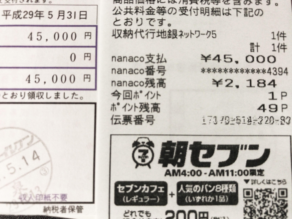 JUGEMテーマ:税金 今年も自動車税は、nanacoで払ったよ。 nanacoチャージで、クレジットカードに1%ポイントが付くからね。 450円だけど、現金で払うのはもったいないね。 __