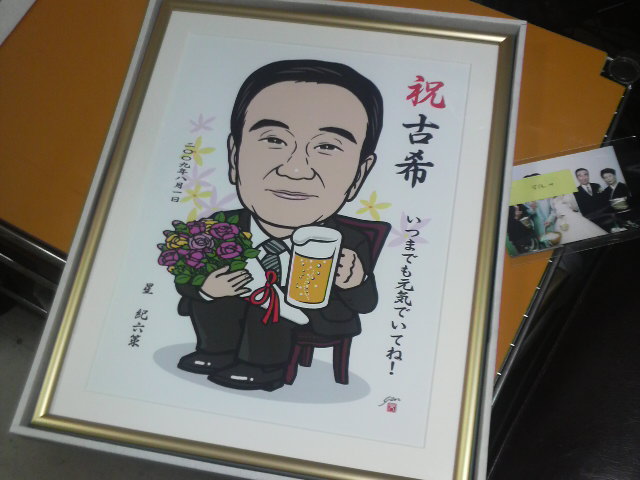 父の還暦祝い「鈴木ゲンお祝い品似顔絵」の贈り物 家族一同大変満足!。鈴木 ゲン様/前川です。絵が到着しました。父の特徴がすごく捉えられていて家族一同大変満足しております。来月、父の還暦のお祝いに絵を渡すのが楽しみです。有難う御座いました。 鈴木ゲンお祝い品似顔絵の贈り物 JUGEMテーマ:お祝い