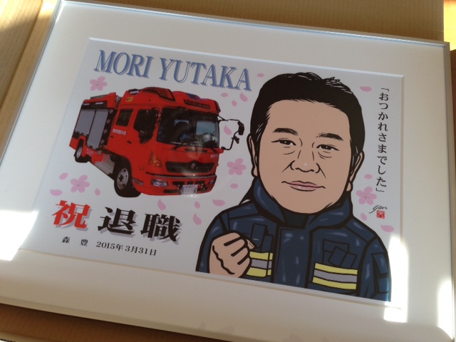 消防官、消防士、退職祝い,ご勇退祝い,退職記念/ 鈴木ゲンお祝い似顔絵の贈り物 とても似ていました! 送別会の贈り物 鈴木ゲンさま 似顔絵届きました!本人にとてもとても似ていました!!送別会はまだ先のことですが、本人もきっと喜ぶと思います。本当にありがとうございました。取り急ぎ、御礼まで。小森拝 鈴木ゲンお祝い品似顔絵の贈り物 JUGEMテーマ:お祝い