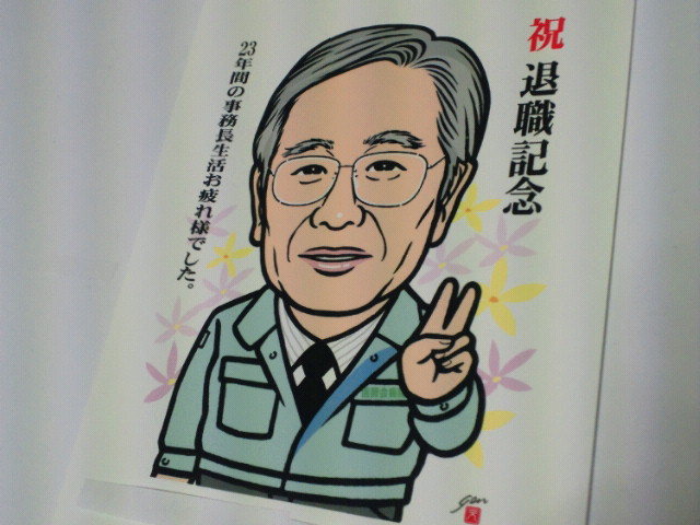 還暦祝い退職記念の贈り物/鈴木ゲンお祝い似顔絵 消防士の退職祝い「鈴木ゲンお祝い似顔絵」は、消防士の上司や消防官の父の仕事着姿や制服姿を、希望に合わてお描きするお祝い贈り物似顔絵です。仕事道具、消防車、思い出の品などを似顔絵と組合わせ、お祝い記念似顔絵に仕上げます。『贈る言葉』を添えた、父や母の退職祝い、ご勇退祝い、結婚式披露宴の記念品として「定年退職記念の贈り物」。『鈴木ゲンお祝い似顔絵』は全て鈴木ゲン自身が描く、独自オリジナルのオーダーお祝い似顔絵作品です。 下記の必...