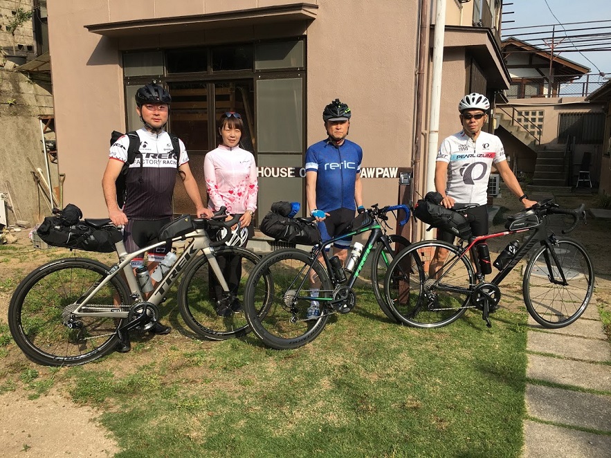 JUGEMテーマ:ゲストハウス GWの連休が終わって最初の週末を迎えました。連休中の満室がウソのように落ち着きを戻しました。 そんな週末は予約が少なかったので、ゲストさん来られるのかな〜と思っていましたが、4組のゲストさんが来られました。写真OKのゲストさんを紹介させていただきます。 来られたのは関東からサイクリスト4名様。初めてのゲストハウスということで、はなれ6+4.5畳和室(個室)をご利用していただきました。 ...