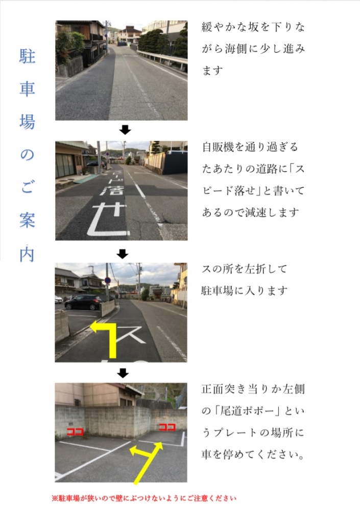 JUGEMテーマ:ゲストハウス ゲストハウス尾道ポポーには駐車場が4台あります。(自転車の大会時などで車でこられる方が多い場合は臨時駐車場を借りるので増えますが・・・)4台が同じ場所ではなくあちらこちらにあるので、道路沿いの1台を除いてあとの3台は少しわかりにくいです。 そのため初めて来られた方は駐車場がわからないことが多いのでそのつど駐車場を直接ご案内しています。駐車場も大小ありまして大き...