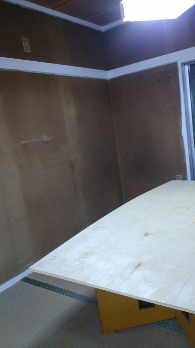 JUGEMテーマ:リフォーム この和室によくある板目の天井を「テンパック」と、呼んでいます。 この物件は雨漏りが酷く、長細い方の天井はベロベロになってしまっています。この状態ですと、パテでの処理はできません。 ベニヤ貼りでの、対応となります。ベニヤ貼り後。 クロス貼り後。 テンパックの貼替えより、この様に仕上げる方をオススメしております。
