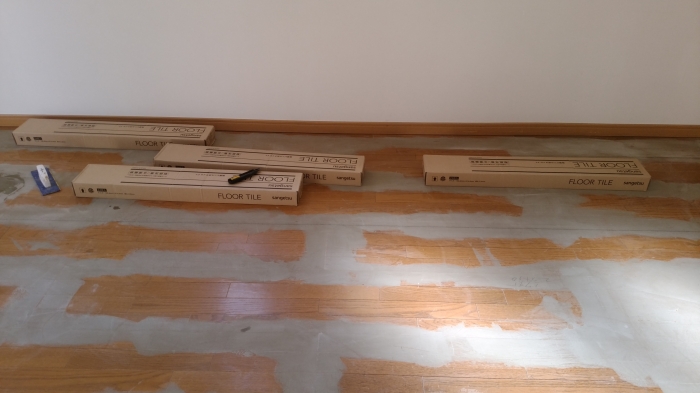 JUGEMテーマ:リフォーム フロアタイルの貼り込みです! 8ケース=192枚貼らないと…。 今回は、サンゲツのWD-905 をチョイス。 フロアタイルを貼る時は、極端な室温はよくありません。室温が低く過ぎると、室温が高くなった時にフロアタイル自体が膨張します。その時に施工不良とかあった場合、どこか異変が起きる可能性があります。 逆に、室温が高すぎる時に施工した場合、室温が低くなった時に、フロアタイル自体が縮んでジョイント部分に隙間が発注します。 ただ、フロア...