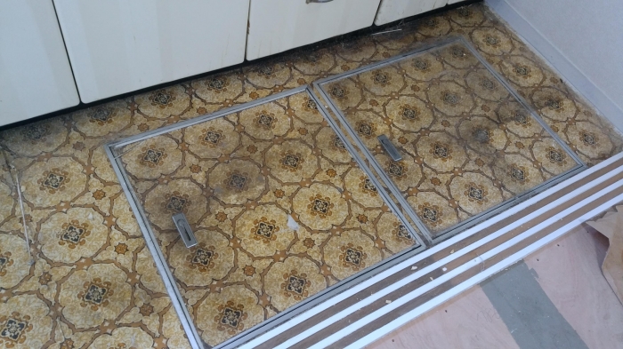 JUGEMテーマ:リフォーム 築古、キッチン床です。 左側の床下収納の経年劣化が酷いので塞ぐことになりました。 できる限り頑丈に! 12ミリのベニヤを貼りました。 アースタックで段差の下地処理。 完成です!