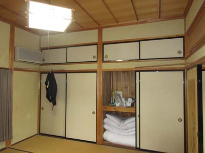 JUGEMテーマ:リフォーム 和室のリフォームです! 元の壁は、聚楽壁(砂壁・京壁)。床は畳(画像は畳撤去後)。 今回の工事は、元の壁に4mmのベニヤ板を貼って、クロスを貼り、床は根太で高さ調整をしてから、12mmのベニヤ板を貼ってから、クッションフロアーを貼りました。 ビフォー アフター。 ビフォー アフター。