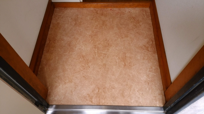 JUGEMテーマ:リフォーム とあるさいたま市の賃貸物件の玄関です。 このクッションフロアーを貼り替えます! 剥がしてみるとなかなか良い下地です! 接着剤を塗ります。 使用するクッションフロアーをオーナー様に任された場合、テラコッタ調を使用する事が多いです。 質感的に、なかなかのクオリティーです。