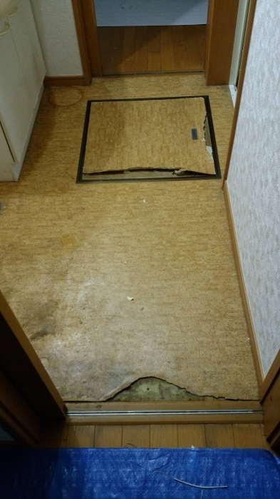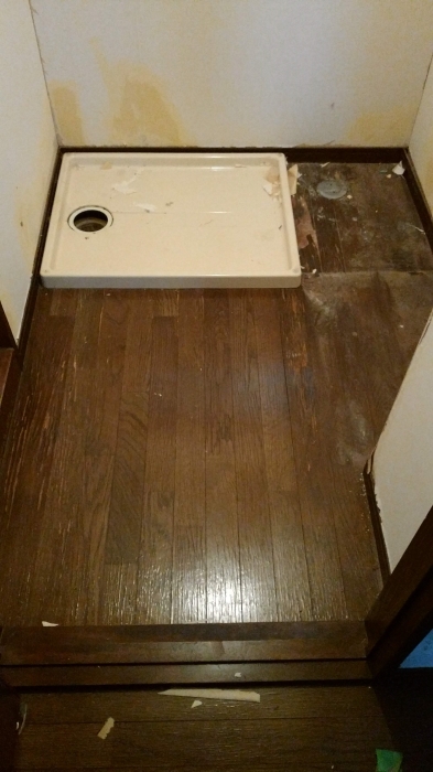 JUGEMテーマ:リフォーム さいたま市のとある賃貸物件の洗面所の床です。 やはり、洗面所などの水回りと呼ばれている所にはフローリングは不向きなんです・・。 近くで見ると・・・。 これを処理してクッションフロアーを貼るんですが・・・。床で一番重要なのは、見た目ではなく強度なので、ここまで劣化してしまった床の場合、上から踏んでみて、床が沈み込まないか?確認が必須です。 今回のこの床は沈み込まないので、このまま処理をすれば、クッションフロアー貼って生き返れま...