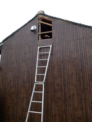 これまた6月末の話ですが、 今年の夏は例年よりも暑いとの長期予報。 それを聞いて毎年熱帯夜の夜、 天井からのこもった熱気が 快適な睡眠を奪う状態を思い出しました。 いくらスポットクーラーで室温を下げても 屋根からの遠赤外線は夜遅くまで効いているのです。 そこで今シーズンはもうちょっと快適に 寝れないものかと、屋根裏の空気を排出する 換気システムを取り付けることにしました。 まずは外観。トタン板で覆われたこの面。 元々は土蔵蔵がくっついたところなので陰って ...