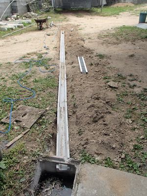 またまた梅雨前にやっていたことネタ。 うちの庭は築山風になってて、豪雨になると 土が道路へ流出してしまい、道路へ出る通路の 地面が削れてしまうという悩みがあります。 それを少しでも解消しようと、 水道に溝を付けることにしました。 (上写真)向かって右側が車庫で、左側に向かって 雨水が川のように流れていきます。 それをこの溝で受け止めたい。 削岩機で地面を柔らかくした後、スコップで堀り、 そのまま適当に水勾配をつけながら埋め込み。 途中、大きな石にも何度か...