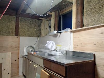 嫁さんがブログを賑わしてくれている間も 実家リフォーム作業はやっておりますよー♪ もう7月になってしまうということで かなり追い込まれてはおりますが。(;^_^A 写真に写っている流し台は2年前に内装屋さんから頂いた 新品同様の代物だったのですが、私の保管状況が悪かったせいで 背面板周りは全て交換しなければなりませんでした。 キッチンパネルは真備屋敷で風呂を作った時の余り物。 天井材も余り物を使ってますが、全然足りてない。。 やっぱりできるだけ低価格でとなると、見栄えが悪くなりますな。(苦...