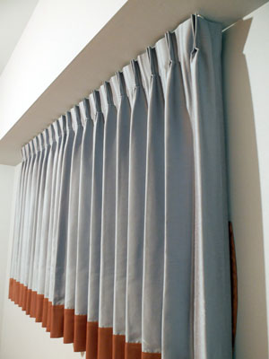 こんにちは インテリアデザイナーの大木です 今年8月の初回相談会からレポートを続けている【女性1人暮らしのマンションリフォーム】 先日ベッドルーム+ヨガスペースになるお部屋のカーテン納品に立ち合いました 光沢のあるブルーカーテン。裾にはブラウン生地を見せてアクセントにしていますが・・