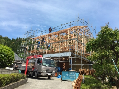 一昨日建て方も終わり、骨組みが見えてきました。 今回の工事は、平屋建ての建物を、建増し(2階建てに)する工事です。 既存の太鼓梁りも手加工しながら、使える材料は使用して工事を行っています。 職人さんご苦労様です。 天井高さはあまりないですが、小屋裏の空間も設けています。 完成後は、わくわく する空間がいっぱいある 住宅になると思います。 JUGEMテーマ:リフォーム