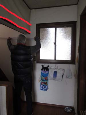 30年以上前・・・ 住宅と牛小屋を繋ぐ形でリフォームされた。 牛小屋は土間仕上げ、住宅の基礎ぶん低い仕上がり。 そこを・・・ 廊下で繋ぎ牛小屋の並びにある農作業室を寝室に、 二階を子供部屋に改装されていた。 階段を上がるところに・・・ 構造体の大きな梁が横たわり頭をかがめて出入りする。 背の高い人なら頭を打つ格好だ! 母屋の・・・ 台所から廊下へ出ると20cmほどの段差が控えている。 その段差を無くすと、床が20cmほど上がるので梁が 目の前に位置するので切断する...