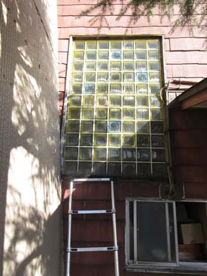 築40年以上・・・ 屋根材を外壁に使った数少ない住宅物件です。 階段の・・・ 「踊り場」の明かり取りに使われているガラスブロック 経年劣化で・・・ あちらコチラに割れが入って、少々危険です! 普通のサッシより・・・ 断熱効率が良かったので採用されたようですが、 今となっては、周囲の木材も腐れているので 取替が必要です。 しかし・・・ 周囲の外壁材との折り合いがとても悪いので アタマを悩ませる物件ではあります。 雨仕舞い・・・ 防水性を良く...