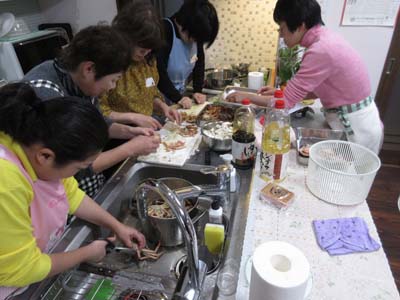 皆生温泉にある・・・ レストランのシェフを家庭に招いて料理を作る。 業務用と違う・・・ 家庭用のIHコンロを使って一流の料理を! ただ今・・・ 皆さん「奮闘中!」 今が旬の、松葉ガニのメス「香箱蟹」の身を出す作業 その身を使った茶碗蒸し。 その蟹の殻を使った・・・ 炊き込みご飯、親ガニのお吸い物などカニづくし。 メインは・・・ 鶏もも肉のローストにサラダ、デザートにプリン。 ドレッシングも手作りです。 熱心に・・・ メモを取りながら主婦目線の質...