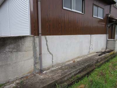 コンクリート基礎に・・・ 割れが入るとその上に立つ建物がとても心配です。 この現場では・・・ 鉄筋が入っていない?と思うほどの亀裂があります。 なんと!割れの巾は1cm以上もありました! 割れを隠すためにコーキングがしてありましたが・・(笑) 基礎の高さが・・・ 1m以上もあるのでこれ以上割れない工夫をしないと! まず・・・ 基礎の表面に塗ってあるモルタルを剥がします。 割れた部分にコンクリート並みの硬さになる 接着剤をポンプで注入します。 そして・・・ 注入した接着剤...