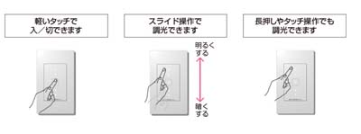 新商品のご紹介です! お手持ちの・・・ スマホを枕元に置いてON/OFFや、明るさの調整が 出来たら便利が良いですよね! お部屋のスイッチを・・・ 押さえず、軽くタッチするだけ! スイッチの・・・ 表面を軽くタッチして上下するだけで明るさが調整! まるでスマホの画面を操作するように5段階調整が可能 ただし・・・ 指先が乾燥していたり、手袋していると 操作できない事もありますが。。 スマホで・・・ 操作する場合は専用アプリが必要です! 調光が出来るLED照明器...