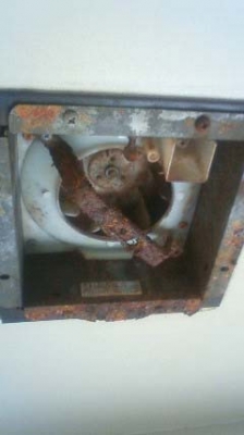 ユニットバスが・・・ 10年も経過すると気づかない部分に弊害が出てきます。 このたびは・・・ 「浴室換気扇がカラカラと異音がします!」と。 カバーを・・・ 開けてみたら、サビだらけでした。 メーカーが違っても同じ穴の大きさで取付が可能です。 30分ほどの・・・ 時間で取替が出来ました。 浴槽では・・・ 入浴剤などを使われる事がありますが、 中には成分が湯気と一緒に吸い込まれ錆びる原因にも! JUGEMテーマ:生活情報