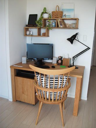 こんにちは インテリアデザイナーの大木です 皆さんのワークスペースは、家のどこにありますか? 大半の方がリビングルームの一角か その近くに作っているのではないでしょうか・・・ 本日は新築マンションのコーディネートで完成した リビングルームのワークスペースをご紹介します じゃん!こちらが完成画像です 奥様がセンスある方で、小物は全て配置されています(素敵!!) 納品したときが1番キレイ!ではなく 住まい手が「使いこなすインテリア」の提案がモットーです ナラ無垢材で作られた、オリジナ...