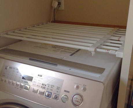 洗濯機の上に突っ張りラックを渡してスペース確保。 このニトリで買ったつっぱり棚を二つ並べて使いました。 スライドで伸びる部分も棚になっているのがイイ(人゚∀゚*) これなら洗濯機の奥の隙間も埋まるので、モノを落とす心配がないです。 ピッタリサイズの板がなかったので、とりあえずこんな感じ。 お風呂上りにすぐタオルが取れるようになりました。 JUGEMテーマ:整理収納