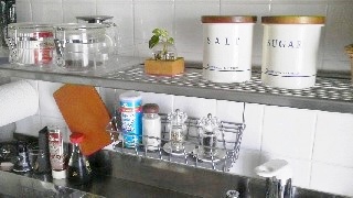 JUGEMテーマ:整理収納 こんばんは! 整理収納☆インテリアアドバイザー 伊藤美佳代です♪ 昨日の、キッチン収納 〜ストック食品〜 に続いて、 今日は普段よく使っている調味料などの収納について。 対面式ではない我が家のキッチンはリビング側からまる見え! なので、見えてもOKな収納を意識しています。 流し台の上部はこんなふうなオープン棚。 コンパクトで収納場所も限られているキッチン。 見た目にもごちゃごちゃしないよう、且つ料理もしやすいように、 この棚を収納場所としてもしっかり活用...