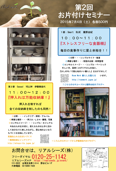 JUGEMテーマ:整理収納 こんにちは、room work 鷹野です。 テレビでよく放送されている『ゴミ屋敷』 「わ〜信じられない・・・なんであんなことになっちゃうの??」 そんな風にテレビに向かってつぶやいていませんか? でも、ちょっと待って〜 皆さまの家の収納の中、ゴミ屋敷になっていませんか?? 収納は立派な家の一部です。 中が見えなければいいの、閉まればいいの・・・なんて言ったらそれは ローンを支払っているご主人に失礼です。 それに、ご自身をも否定するようなもの...