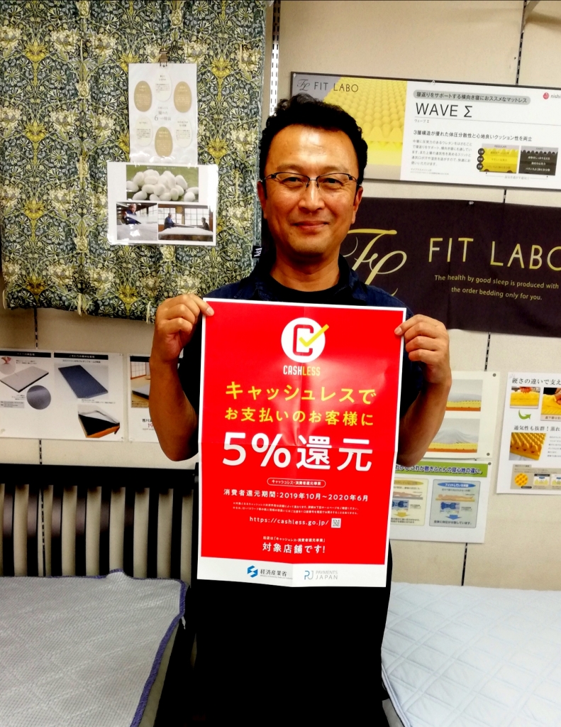 JUGEMテーマ:寝具 JUGEMテーマ:クレジットカード いつもかわの寝具青崎店のブログを見ていただき ありがとうございます。 昨年末の増税で始まった クレジットカード決済でお買上げされると 5%がお客さまに還元されるという国の制度が 終了間近となりました。 消費者還元期間は 2019年10月〜2020年6月 です。 かわの寝具青崎店では オー...