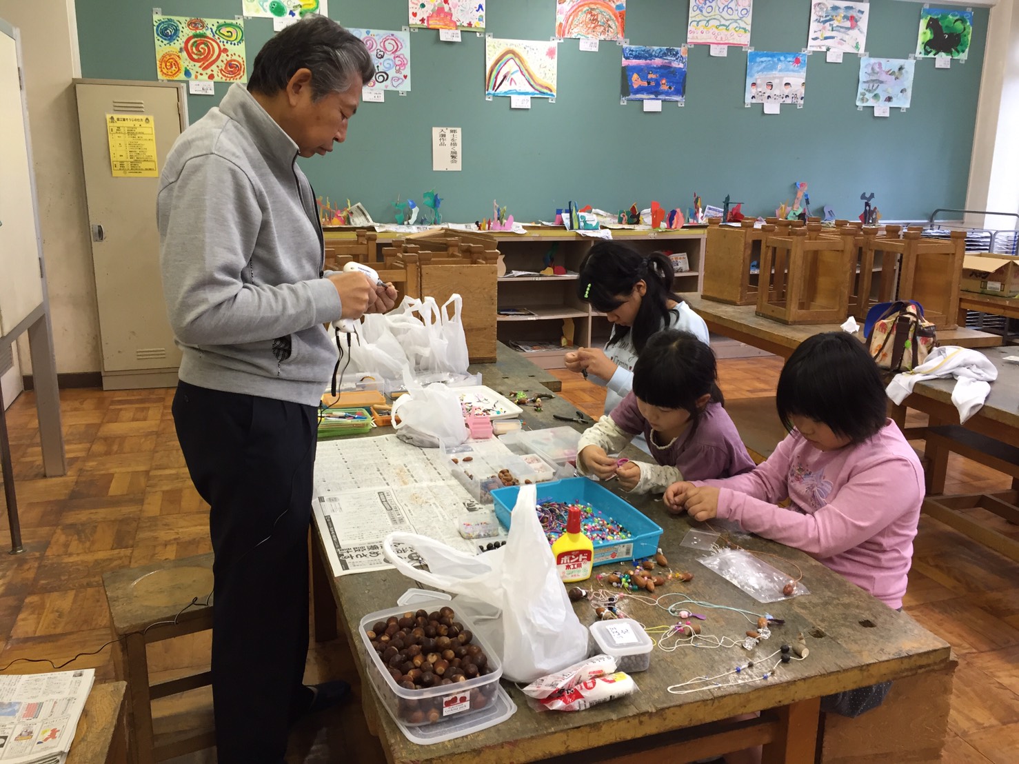 前日に、ボルネオ、ラオス支援のものづくりをしました。 講師は植物の会から西川先生、虫の先生吉野さんです。 作ったのは、松ぼっくりツリーや竹カエル、ドングリブレスレットなどです。 竹とんぼや草加せんべい焼きなどもしました。 今回の売り上げは、26,666円になりました。子どもたちの力は素晴らしいです。